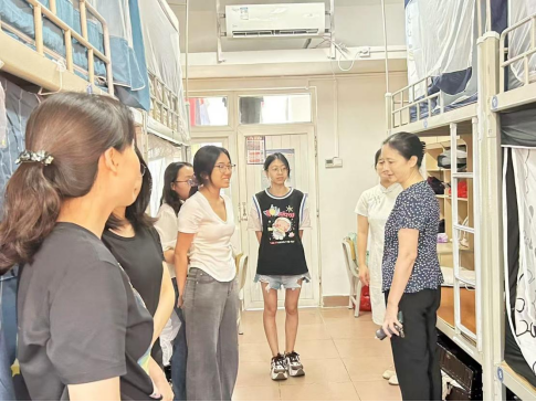 9月14日下午,学院党委书记胡小坤、院长胡红一、党委副书记邓莹、副院长穆枭、副院长欧阳宜文及学工组老师、新生班主任一同走进新生宿舍,仔细询问和了解新生安顿情况,了解新生对新环境的适应情况、住宿饮食情况,等等。胡小坤嘱咐新生:要好好吃饭、好好休息、好好锻炼、好好学习,安顿下来之后,要记得给家长打个电话,让家长放心。要尽快调整自己,努力适应并融入新的学习生活环境,要和同学和睦相处,让宿舍成为温馨和谐的“小家”。她叮嘱辅导员和班主任做好学生成长的引路人,多深入一线,倾听学生的心声,解决实际困难。亲切的问候和殷切的期待,让初入校园的新生倍感温暖。