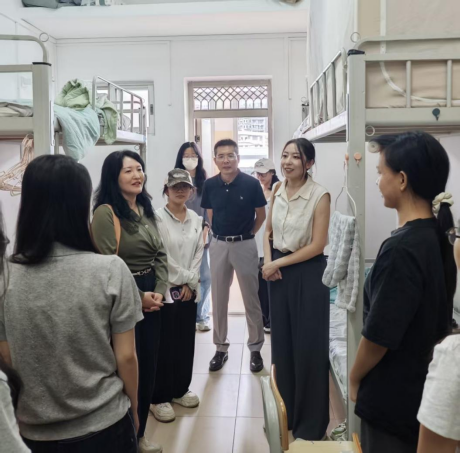 (学院党委书记胡小坤、党委副书记邓莹走访新生宿舍)